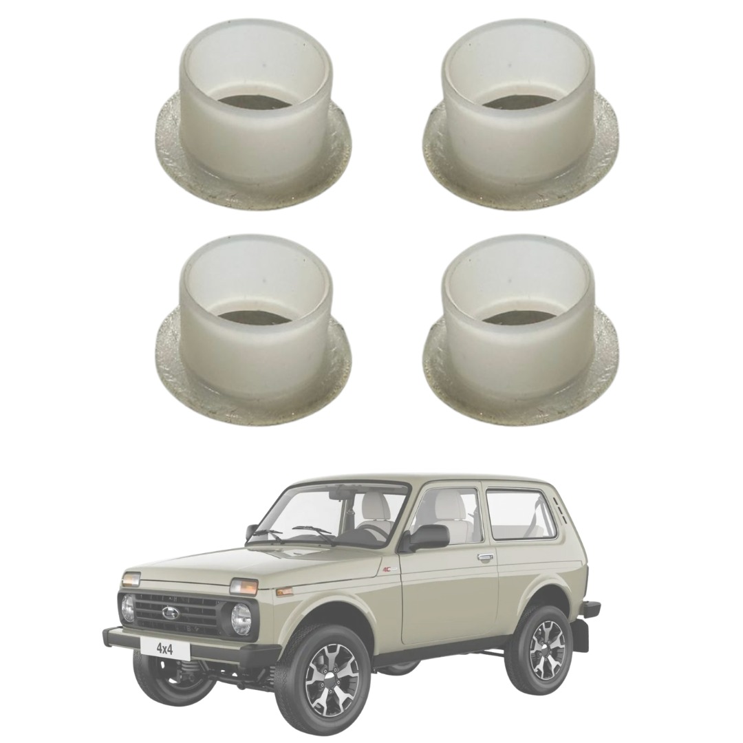 Kit com 4 buchas da alavanca de redução para Lada Niva 1.6 e 1.7, compatível com todos os anos de fabricação. Essenciais para o correto encaixe e funcionamento da alavanca da caixa de redução, essas buchas reduzem folgas, vibrações e ruídos, garantindo engates mais firmes e precisos nas trocas de tração. Produzidas em material de alta durabilidade e resistência à compressão, são ideais para reposição em manutenções preventivas ou corretivas do sistema de transmissão 4x4.